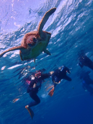 みんなが泳いでるとこに、可愛いアオウミガメが遊びに来てくれました。