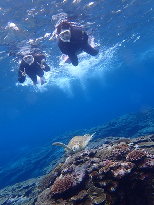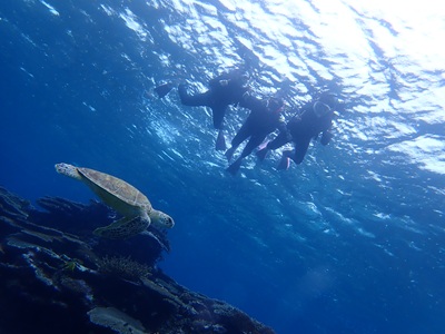 ウミガメとも泳げてラッキー(*ノωノ)