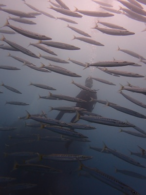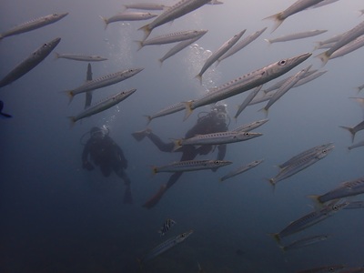 カマスたちもダイバーに慣れてきたのか、のんびり泳いでくれるので、写真も撮りやすい‼
