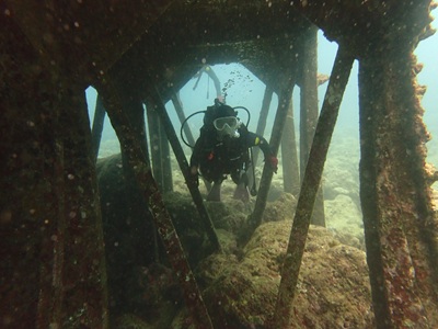 浄水場前では、漁礁になってる給水口で魚の群れに突撃したり、
