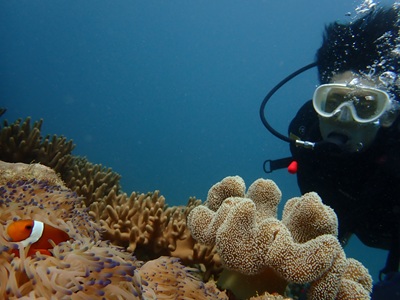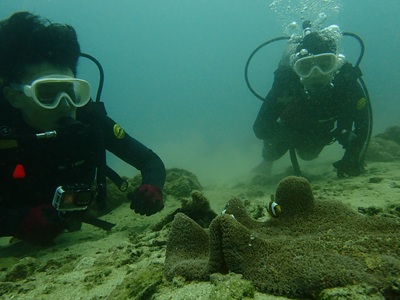 そしてこちらも定番のトウアカクマノミ。ダイバーに近寄ってくれる いい子です( ´艸`)。